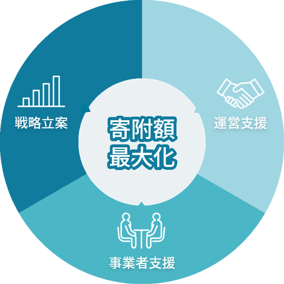 自治体の業務負担を軽減し、寄附額最大化と地域活性化を実現します。